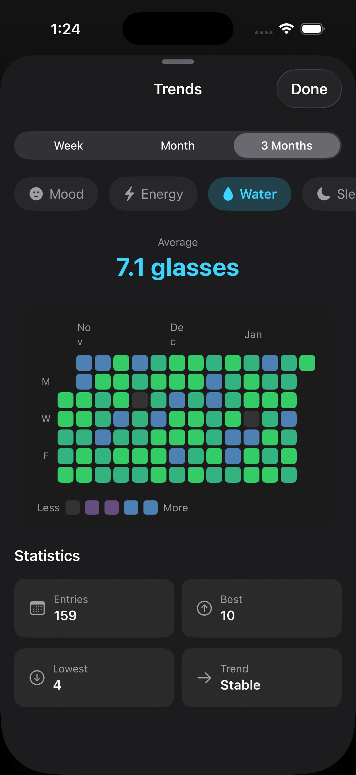 Tap to previewTrack mood, energy, sleep, and water. Gratitude journaling to understand your patterns.